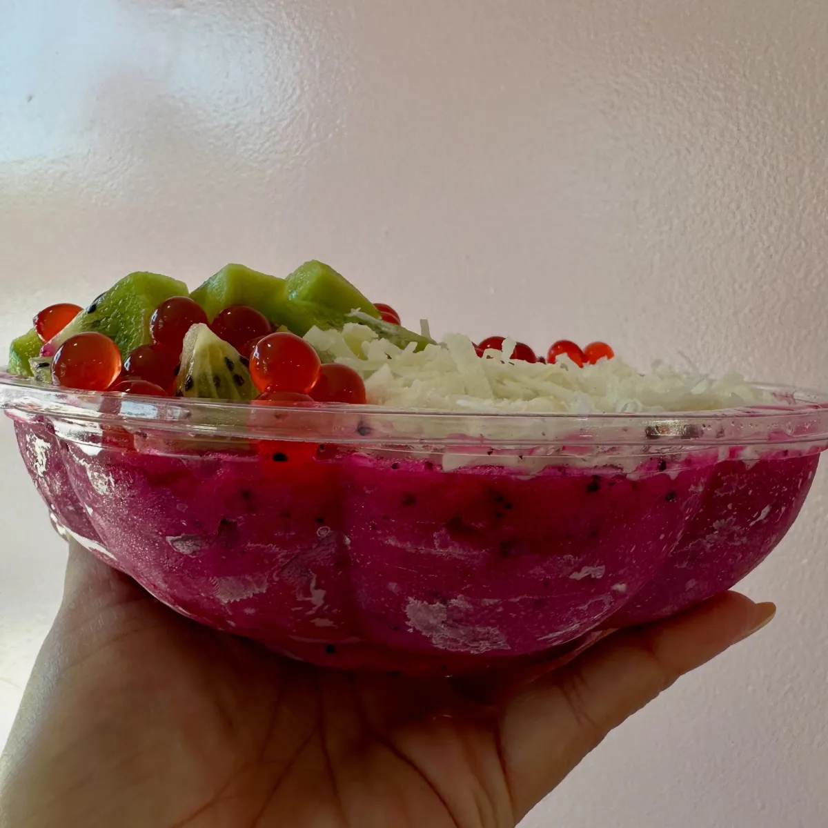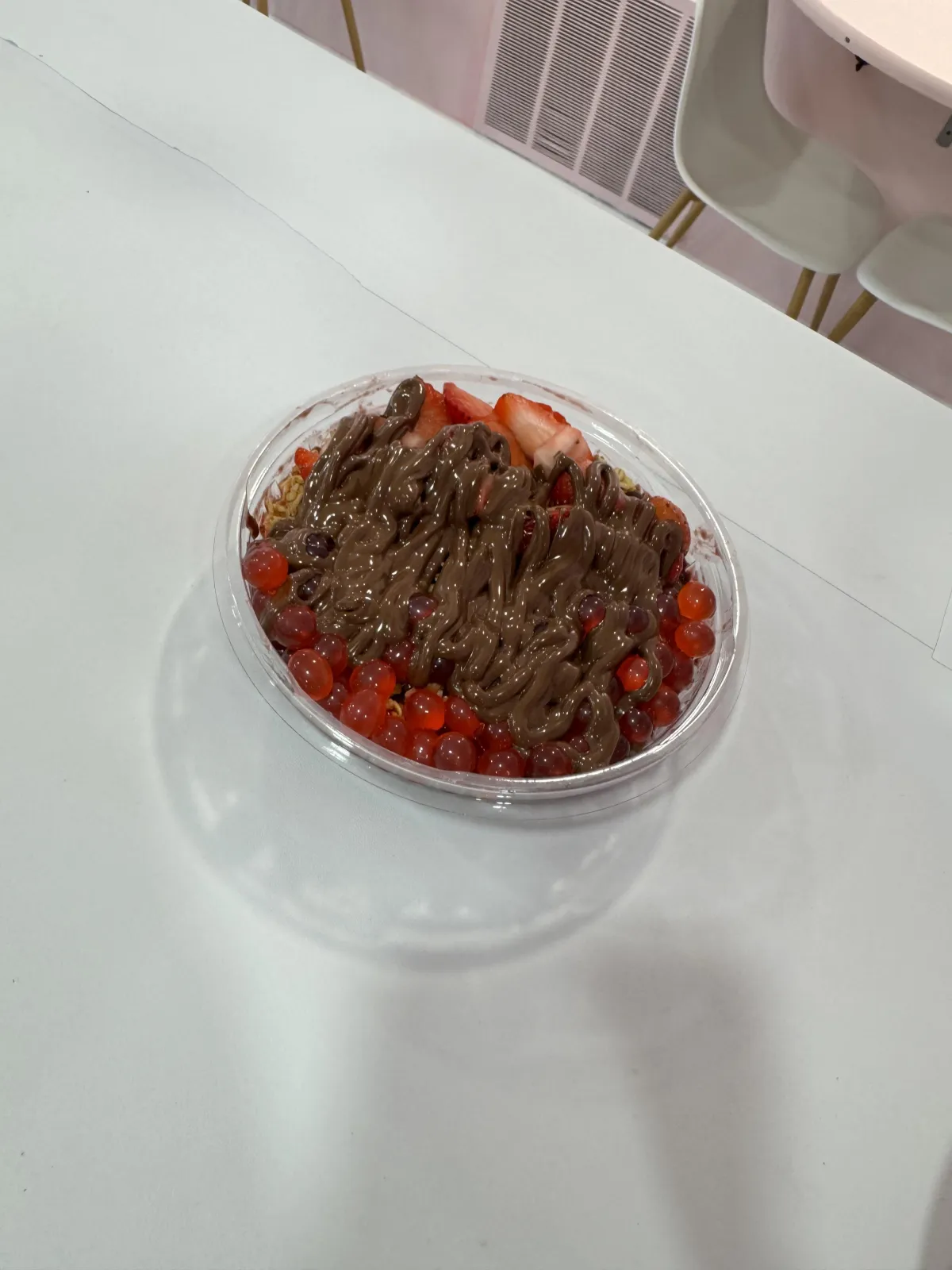 Strawberries, Blueberries, Banana, Mango, Coconut Flakes, Granola, Oats, Chia Seeds, Flax Seeds, Grahams, Walnuts, Almonds, Chocolate Chips, White Chocolate Chips, M&M’s, Rainbow Sprinkles, Pomegranate Bobba, Passion Fruit Bobba, Strawberry Bobba, Mango Bobba, Peanut Butter Drizzle, Nutella Drizzle, Honey Drizzle, Condensed Milk Drizzle, Chocolate Drizzle, and Caramel Drizzle.